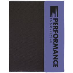 Laser engraved purple leatherette portfolio is 9½" x 12". Comes with a 50 page lined note pad and a penholder. The portfolios have a magnetic closure. These portfolios small pockets and a flap to enhance organization. Office elegance at its best. Wipes off easily and does not show finger marks or water spots. Imprint color is black. Comes individually packaged in a black gift box. Makes an appreciated corporate gift for any executive.
